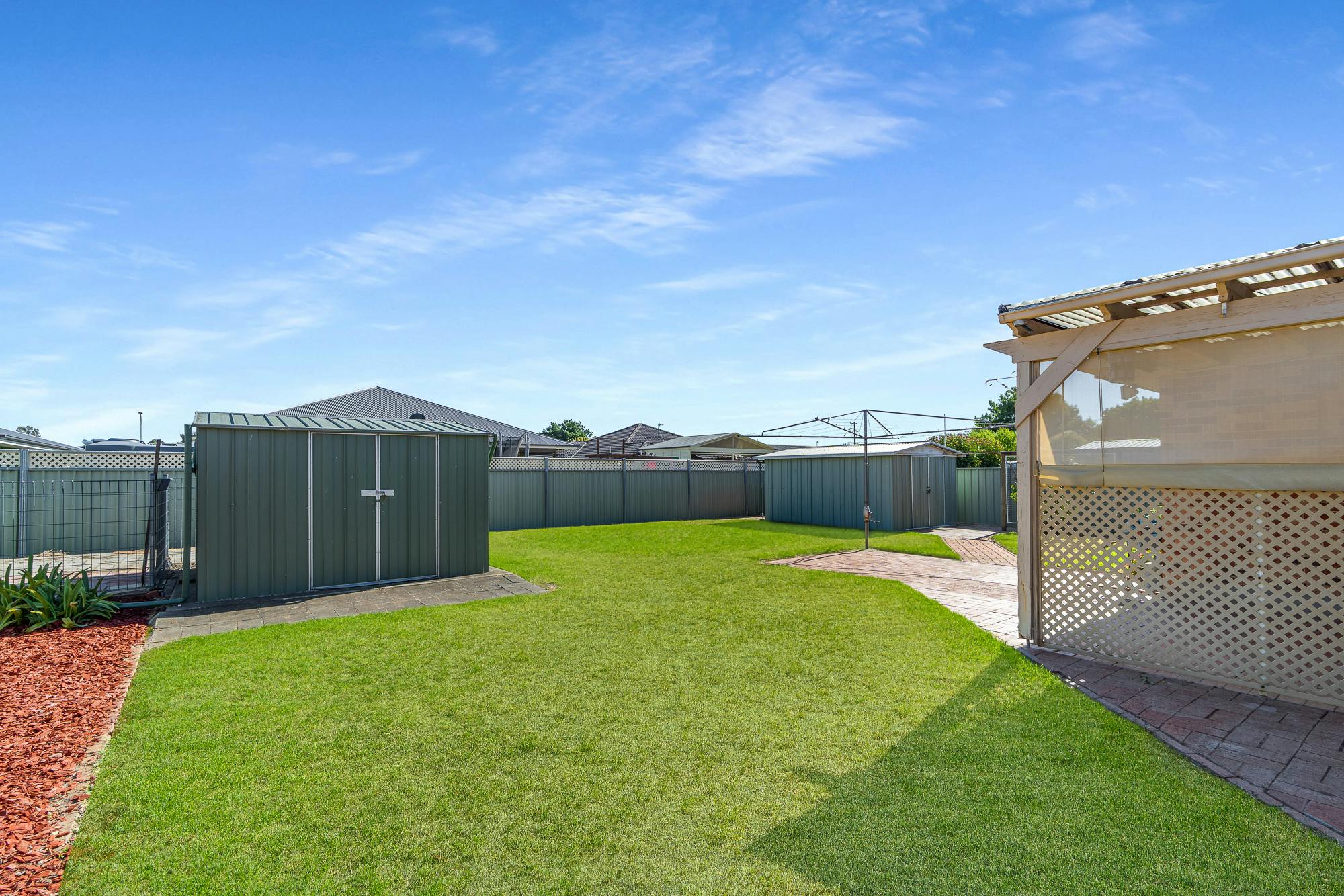 Step outside to a covered rear patio, perfect for entertaining, overlooking established gardens and lawns in a fully fenced yard. Storage and parking are well catered for with two garden sheds, a double lock-up garage with drive through access to the yard, plus a double carport.
