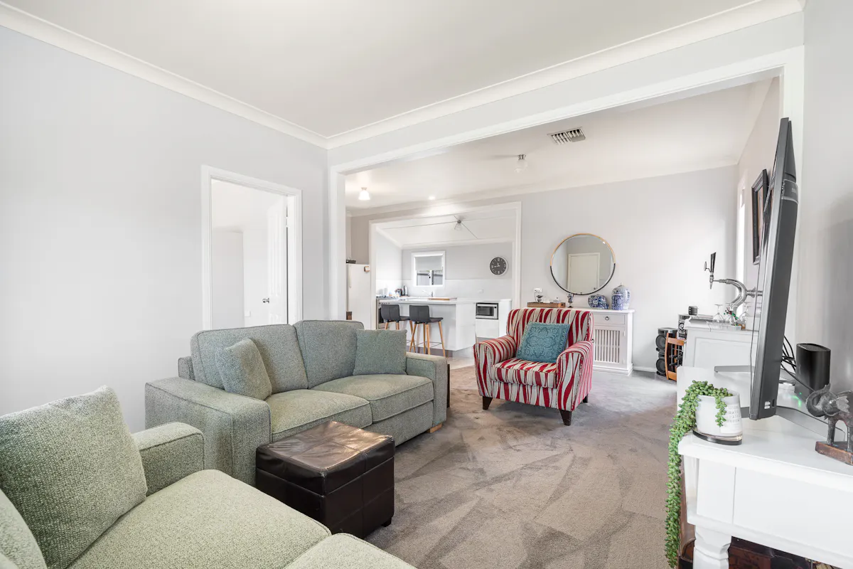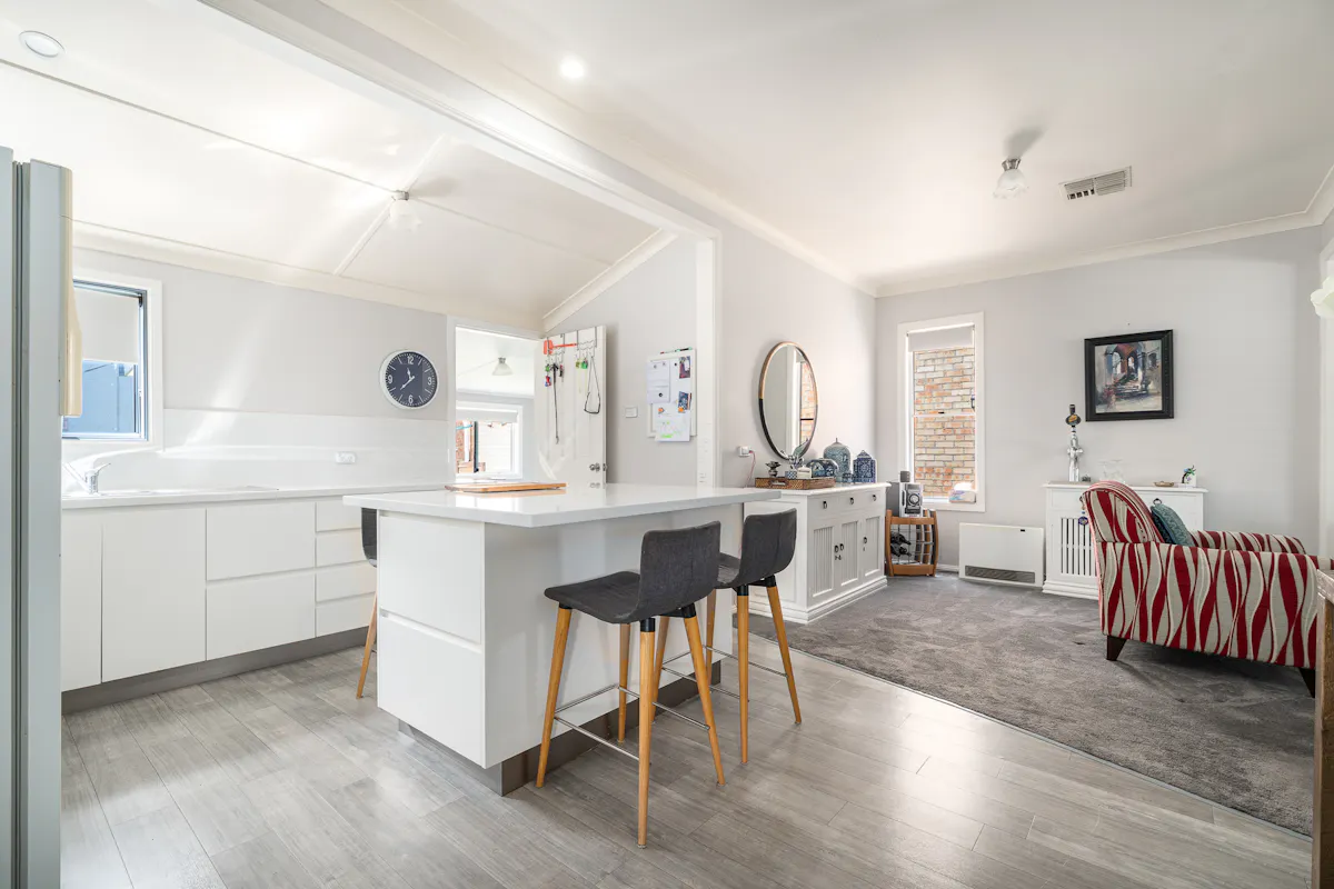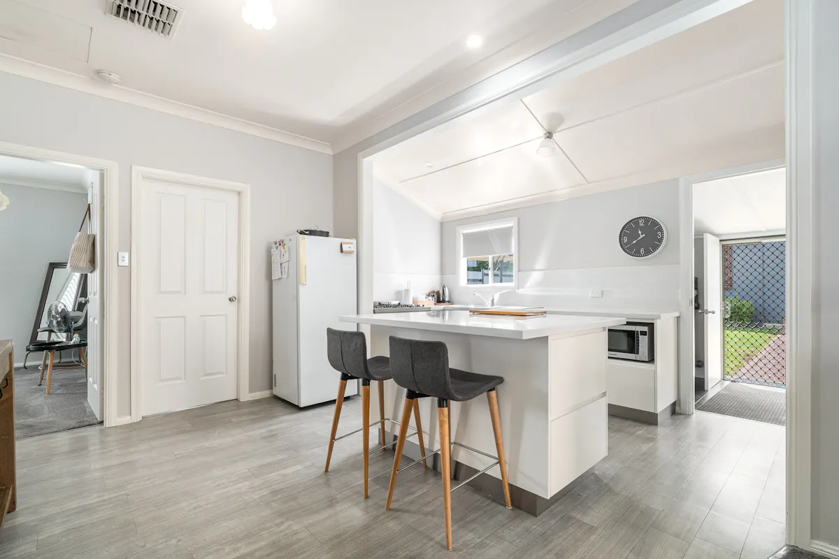Inside, the home features a fresh, contemporary kitchen with island bench and quality finishes, flowing through to a spacious open-plan living and dining zone. Neutral tones, updated flooring and abundant natural light create a welcoming and move-in ready environment.